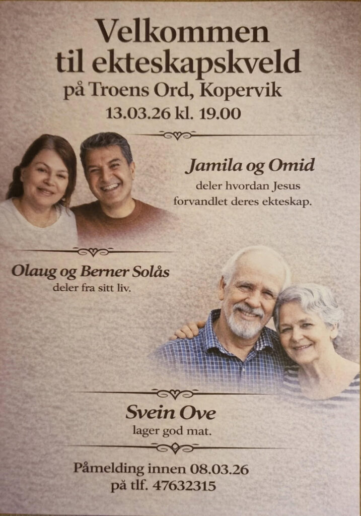 -Ungdomsmøte hver lørdag for ungdommer fra 8. klasse og oppover. Ungdommene samles kl 20:00 på Troens Ord i Kopervik
